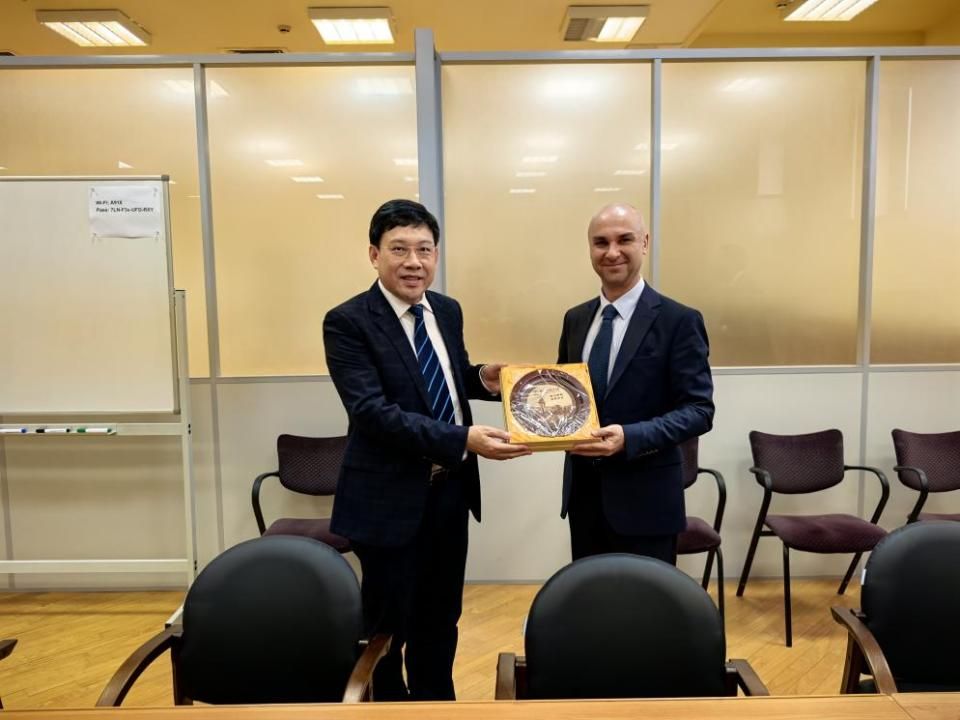 代表团访问莫大法学院,与学院国际交流处主任切沃特科夫,亚洲法律研究中心主任莫洛特尼科夫等进行会谈。刘仁山介绍了天津上合组织峰会习近平总书记关于全球治理倡议,表达与莫大学法学院在培养国际法治人才方面开展合作的意愿。会谈结束,刘仁山向莫大法学院图书馆赠送其主编的书籍《国际私法与人类命运共同体之构建》。在切沃特科夫的带领下,代表团参观教学楼,法学博物馆等。