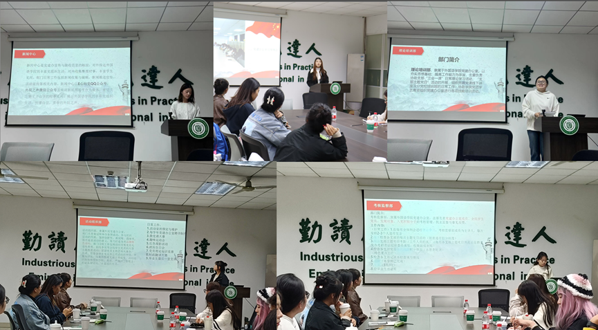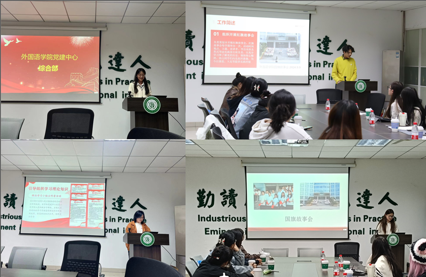 党建办综合事务部王美林、党员发展部张欣雨、档案管理部孙心蕊、考核监察部胡珮雯、活动组织部马萌婕、理论培训部刘晓彤以及新闻中心周静同学依次介绍了党建办在有关会议组织、党员发展培养、档案与材料管理、活动考勤与考核、红色主题活动举办、理论学习与培训和新闻编辑与推送等方面的工作内容、执行流程以及取得的成果。她们详细阐述了每一项工作对于党建工作整体推进的重要意义,展现出党建办严谨细致且高效的工作风貌。每个部门都在各自的领域发挥着不可替代的作用,共同铸就了党建工作坚实的堡垒。