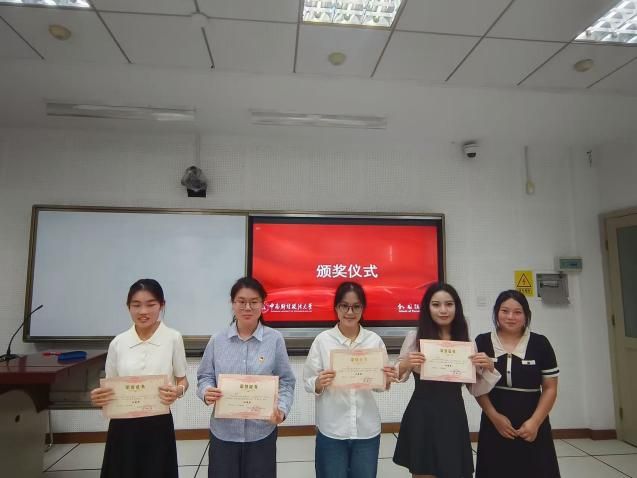 经过角逐,张润玉荣获本次党史故事宣讲比赛一等奖,徐书颖和何冉冉荣获二等奖,孟懿雯、潘妍和马梦茜荣获三等奖,谢瑾、周昕洋、张赫和刘芷吟荣获优秀奖。三位评委老师为获奖选手颁奖表示祝贺,并一起合影留念。