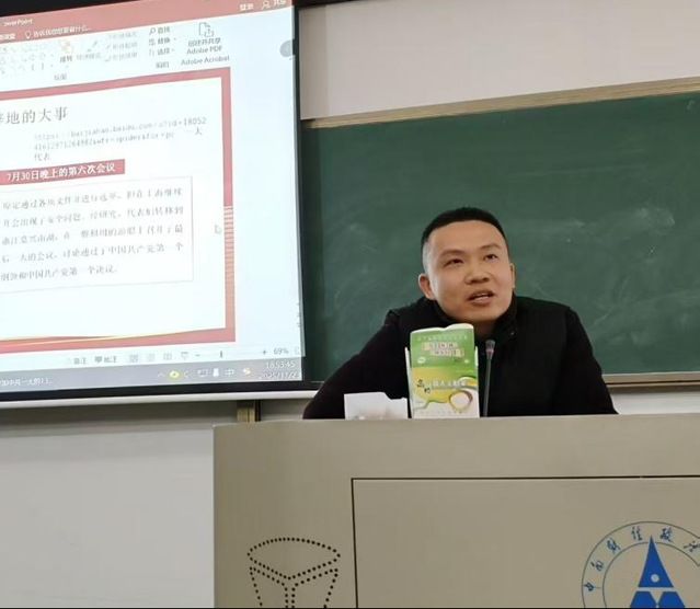 11月23日晚,本科生辅导员李涛老师以“中国共产党的光辉历程”为题展开授课。他系统讲授新民主主义革命时期、社会主义革命和建设时期、改革开放和社会主义现代化建设新时期、新时代等重要阶段,生动诠释党的百年担当。他强调,党史学习教育是汲取智慧力量、传承优良传统的重要源泉,勉励学员们牢记初心使命,在自我提升中发挥先锋模范作用,投身服务人民的事业。