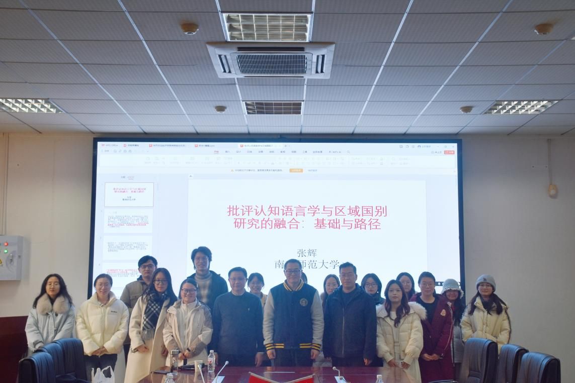 (通讯员 姚瑶)20251217日下午,第393期文澜大讲堂之名家讲坛——第十六届研究生学术节系列讲座暨导学思政大讲堂在文波楼402会议室举行。本次讲座以“批评认知语言学与区域国别研究的融合”为主题,邀请了南京师范大学二级教授张辉主讲,学院2024级、2025级外国语言学及应用语言学和国别与区域研究专业研究生到场聆听。讲座由外国语学院副院长袁奇教授主持。