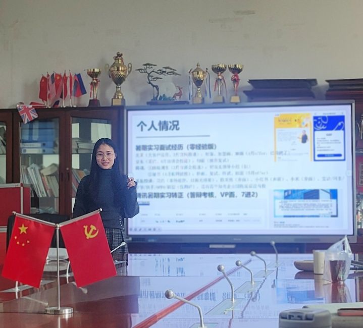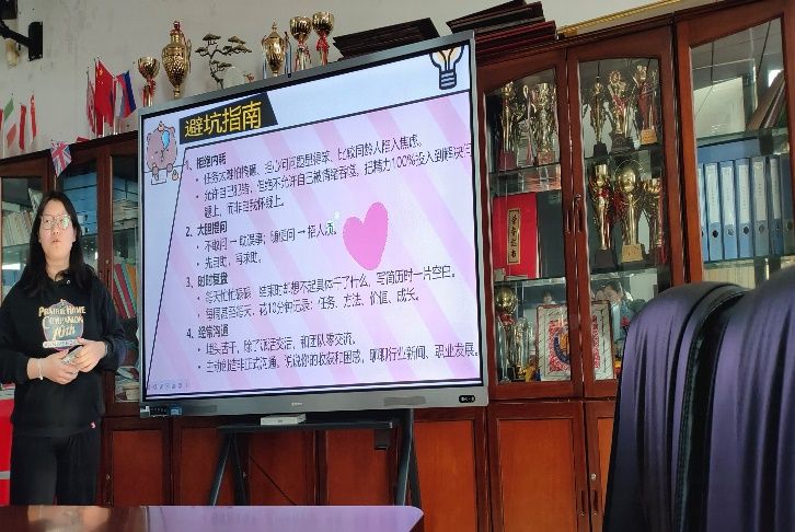 最后,辅导员易涵老师对本次分享会进行总结。她鼓励同学们打破对实习的刻板认知,勇敢走向实践岗位,在实际工作中锻炼沟通协作与解决问题的能力,为未来职业发展奠定坚实基础。