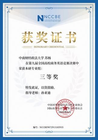 人物简介:苏杨,女,汉族,中共预备党员,外国语学院2024级通用笔译专业硕士研究生。在校期间获得2025年研究生国家奖学金、校一等学业奖学金。