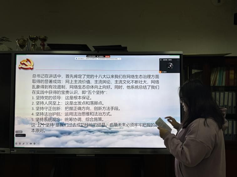 理论学习阶段,沈双楠、方怡、郝晨曦三位同志分别领学相关重要论述。沈双楠解读习近平总书记关于党的自我革命“五个进一步到位”要求,结合中央八项规定精神,阐明正风肃纪反腐的重要性;方怡传达中央政治局网络生态治理集体学习精神,讲解“五个坚持”原则,号召党员守护清朗网络空间;郝晨曦聚焦全面依法治国,传达相关工作会议精神,强调坚持党的领导、人民当家作主、依法治国有机统一。