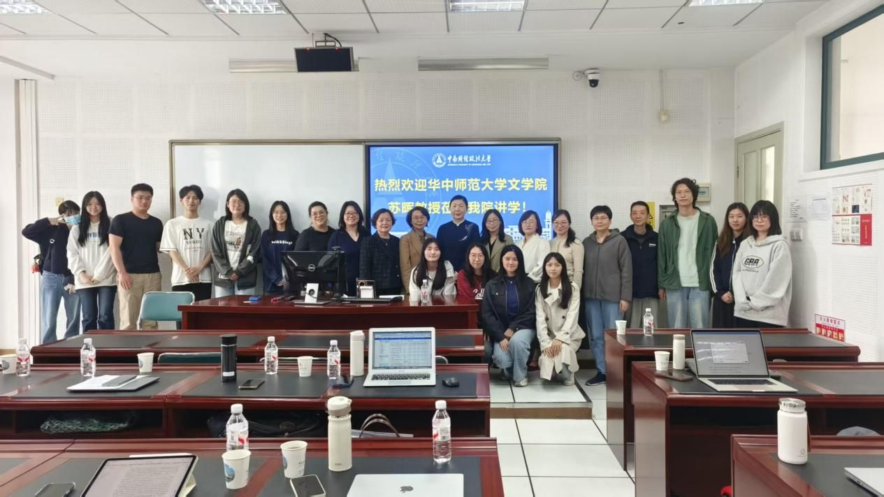 (通讯员:王涵)2026年4月16日下午,苏晖教授学术讲座暨国社科基金项目申报专题辅导活动在学院顺利举行。本次活动分为“人工情感智能体:文艺创作与伦理挑战”学术讲座与国社科基金项目申报专题辅导会两大核心环节,学院院长王娜教授亲自主持、副院长李晶教授,文学导师组组长刘红卫教授,以及学院外国文学方向科研骨干教师、研究生全体到场参与。