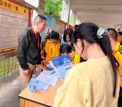 活动期间,招生工作组通过座谈交流、现场咨询等形式,与各校师生进行深入互动。在秀山一中,校领导与来访的各高招生组聚焦“高校—高中”衔接育人主题开展座谈会。在学校咨询展台前,三位老师详细介绍了学校办学历史、学科优势、人才培养特色及就业深造情况,并耐心解答了考生关于录取位次、专业选择、辅修政策等具体问题。现场还发放了报考指南和校园文创产品,气氛热烈。