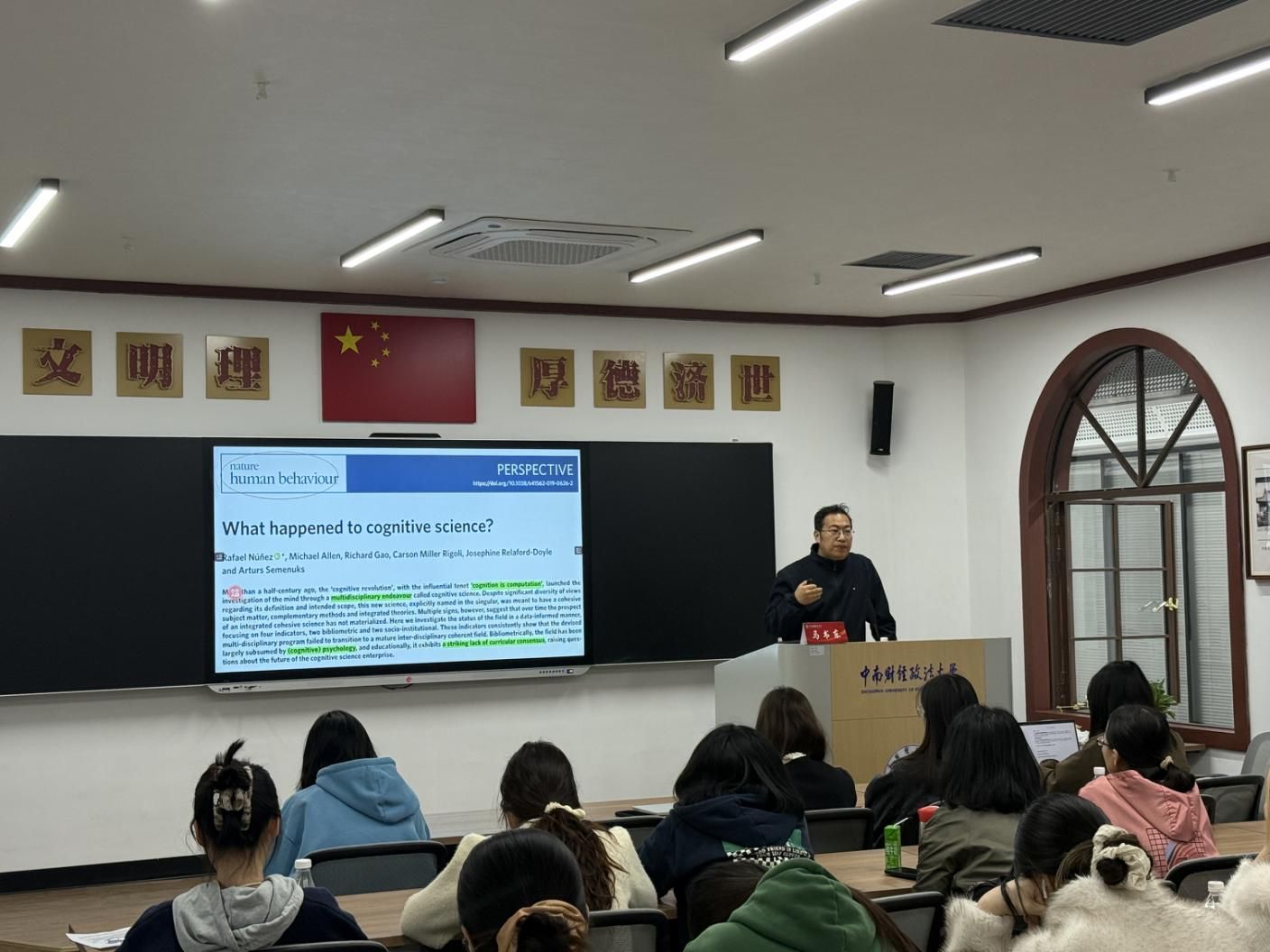 (通讯员 彭沁鑫 范雨欣)2026422日,为推动学术交流发展、营造良好学术氛围,学院在环湖一站式学生综合服务中心希贤学堂举办了文澜大讲堂暨导学思政大讲堂活动。讲座以“外语学科跨学科融通中的大语言模型与认知语言学”为主题,邀请外国语学院马书东教授担任主讲人,2024级、2025级研究生代表到场聆听讲座由研究生工作办公室主任张冉主持。