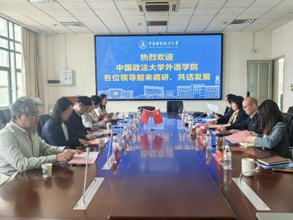 院网讯(通讯员:李燕)2026424日上午,中国政法大学外国语学院院长张清、院党委书记黎洋等一行来院调研,会议在文波402举行, 双方围绕学科转型、人才培养、师资建设等核心议题展开。中国政法大学外国语学院党委副书记张艳萍、英语语言文学研究所所长丁韬,学院院长王娜、党委书记陈亚奇、党委副书记秦小莉、白玉党政办主任袁园、英语语言文学系副主任曹宇参,会议由王娜主持。