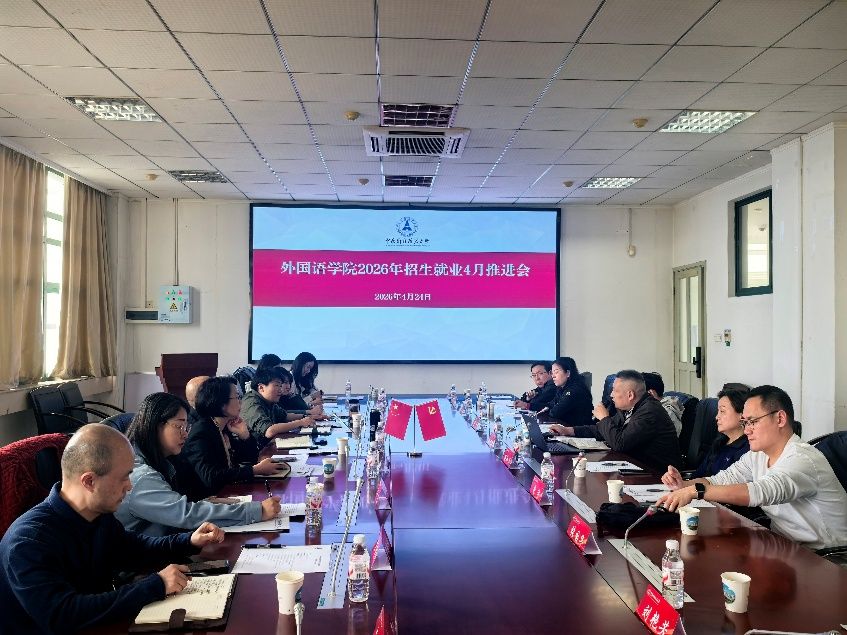(通讯员:李涛 易涵)为深入推动招生就业工作提质增效,外国语学院于4月24日下午在文波楼402会议室召开2026年招生就业4月推进会。本科生院招生工作办公室主任石凌、就业指导服务中心副主任贾晓、川外附中(重庆外国语学校)教务处主任童朝阳出席会议。学院领导班子、各系部负责人、导师组及行政人员代表参会,会议由院党委书记陈亚奇主持。